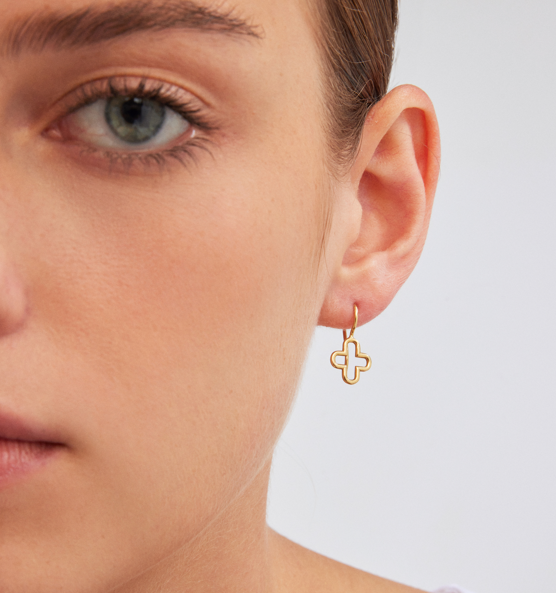 Mini cross-outline earrings from the Byzantium collection, inspired by the intricate patterns of priests’ vestments, monastery gates, and Byzantine church manuscripts. A design that captures the elegance and artistry of the Byzantine era in a delicate, contemporary form.