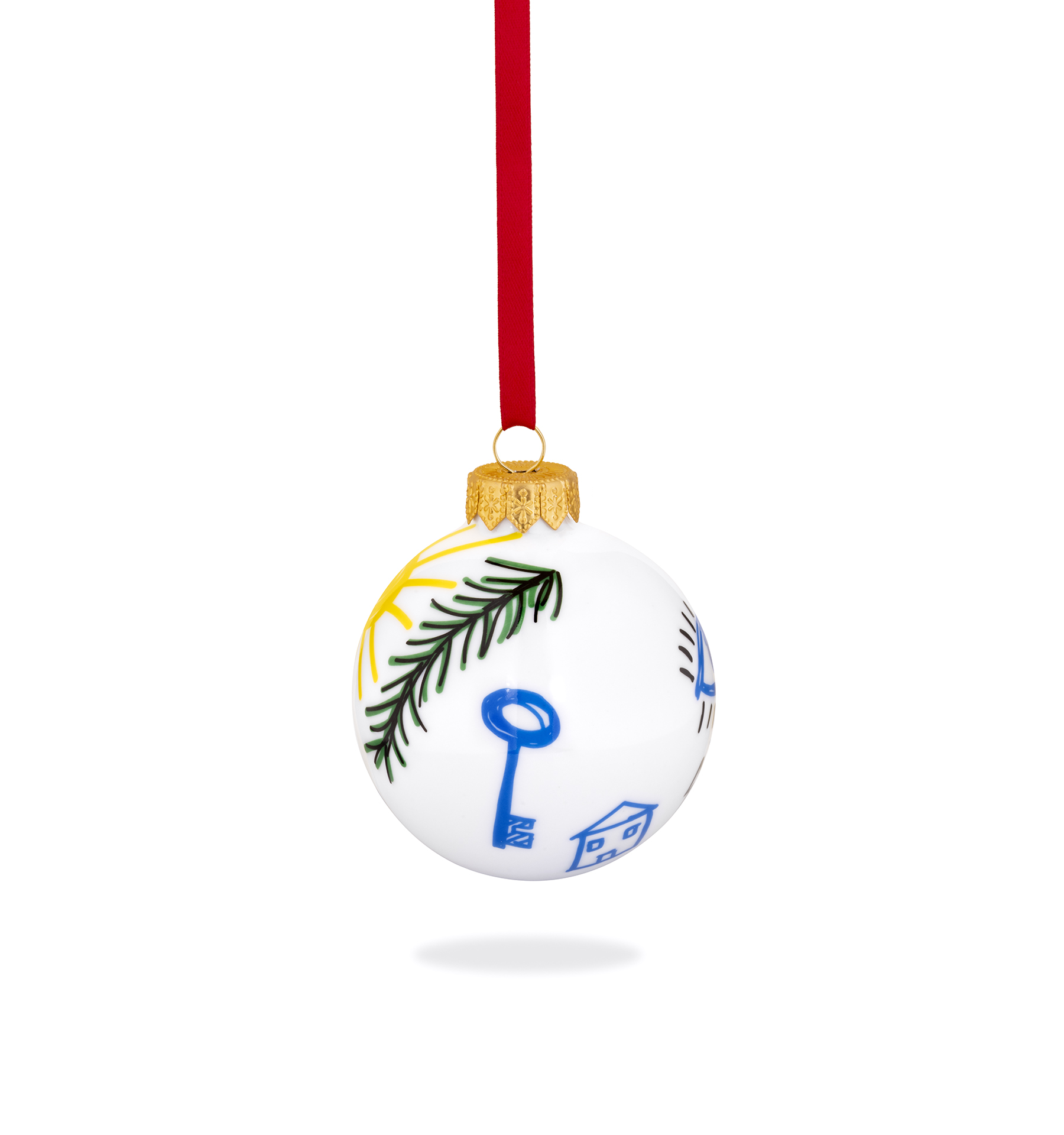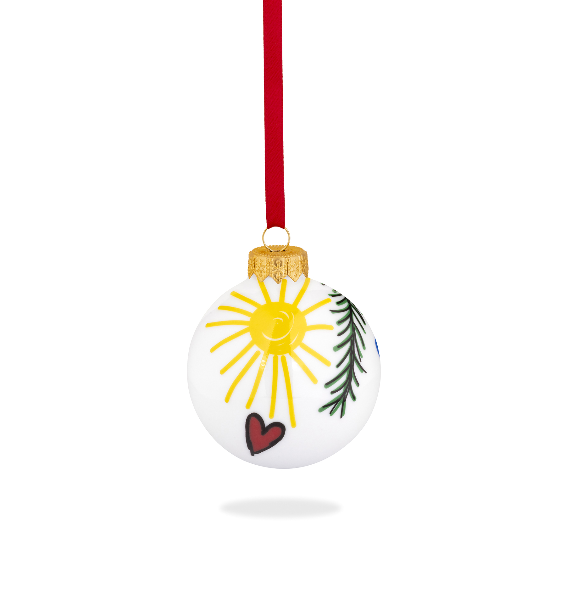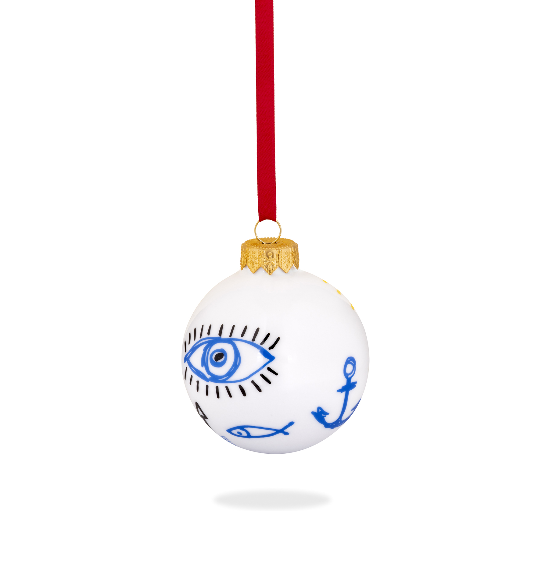 A unique Christmas bauble decorated with hand-drawn sketches and uplifting words from the sketchbook of Elena Votsi—a celebration of joy, hope, and heartfelt sentiments. Featuring meaningful sketches like the sun, symbol of life; the heart, for love; the key, for new beginnings and the year ahead; the house, for safety and protection; the fir branch, for a festive touch; the anchor, for stability; and the eye, for protection and good luck. Hang it on your tree, decorate your home, or offer it as a meaningful gift. Add a playful spirit and a fresh, artistic touch to your holiday season. Combine this festive item with any other piece from the My Best Wishes collection to create the perfect Christmas gift for your loved ones.